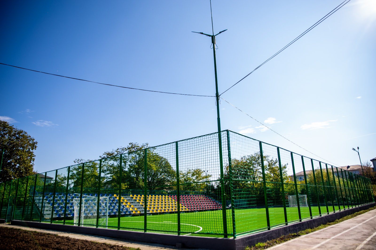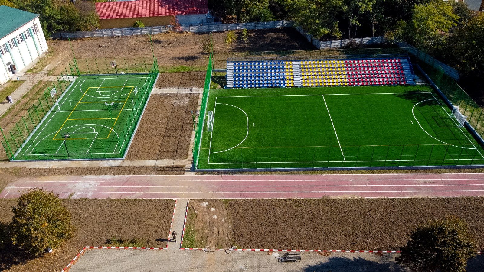 Noua bază sportivă cuprinde două terenuri multifuncționale pe care se pot practica fotbal, baschet și volei, precum și 300 de locuri în tribune. Este un spațiu modern, gândit pentru activitățile elevilor și pentru dezvoltarea lor prin mișcare, disciplină și spirit de echipă.
