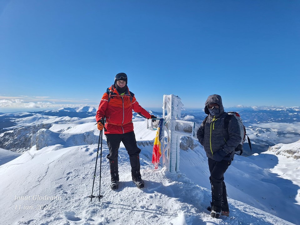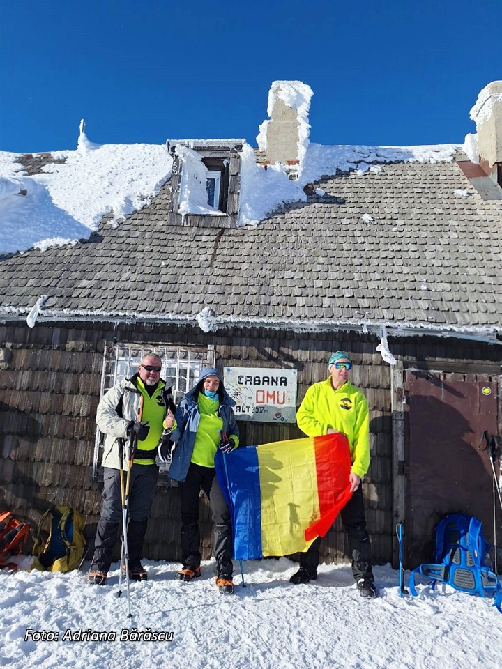 Fiindcă se anunța vreme friguroasă și ceva vânt în zona alpină, prima echipă formată din 5 montaniarzi, echipați complet pentru astfel de ture grele, a plecat la ora 7,30 spre vârful Omu, urcând pe valea Obârșiei (marcaj Bandă albastră) în ritm alert. A doua echipă, formată din 7 montaniarzi, a urcat cu telecabina Peștera – Babele (pentru a câștiga altitudine), a parcurs clasicul Platou al Bucegilor (marcaj Bandă galbenă) pentru a ajunge și ei (doar 3 din 7) la cota maximă (vârful Omu – 2507 m). În ciuda unei prognoze dure, vremea a fost însorită, dar în zonele de gol alpin, vântul a suflat cu putere „ajutând” la atingerea unor „temperaturi resimțite” de minus 15-17 grade. Cei rămași în tabără au făcut câteva trasee mai scurte (spre Șaua Strunga, spre Peștera Ialomiței) sau săniuș pe pantele mai domoale din bazinetul Padina, apoi au trecut la activități culinare așteptând înfrigurații drumeți cu o bunătate de ciorbă și un vin fiert. Seara a însemnat și un moment de bilanț al anului trecut, dar și un moment de lansare oficială a unui nou proiect, TOP 70, adică cucerirea în anul 2025 a 70 de vârfuri (nu contează înălțimea lor), fie din țară, fie din străinătate!