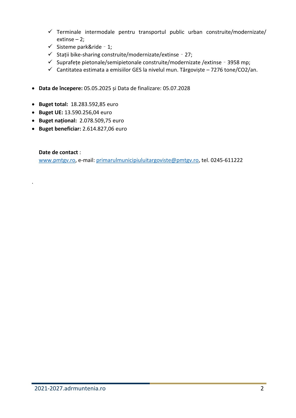 Titlul proiectului: ”SUSȚINEREA INTERMODALITĂȚII ȘI TRANSPORTULUI ALTERNATIV ÎN MUNICIPIUL TÂRGOVIȘTE”