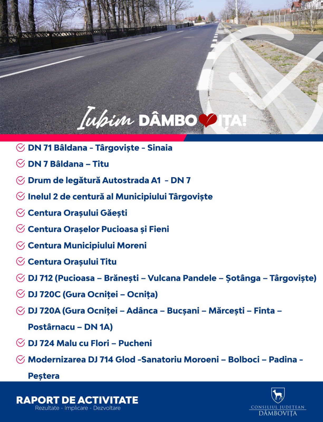 Și toate acestea Pentru că iubim Dâmbovița!”-a  transmis  preşedintele  Consiliului Judeţean Dâmboviţa, Corneliu Ştefan.