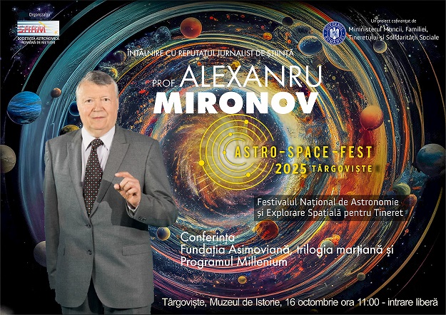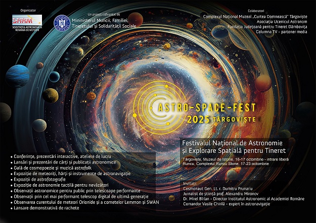 Societatea Astronomică Română de Meteori organizează Astro-Space-Fest 2025 – Festivalul Național de Astronomie și Explorare Spațială pentru Tineret.