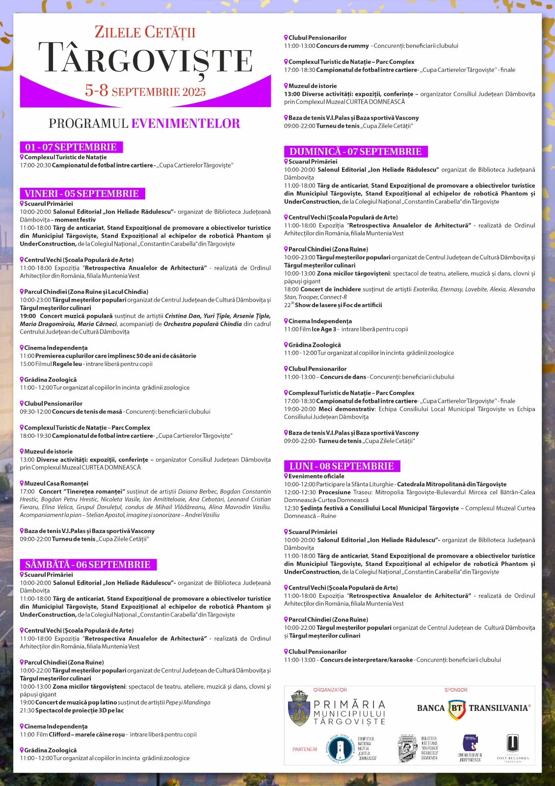10:00-23:00 Târgul meșterilor populari organizat de Centrul Județean pentru Cultură Dâmbovița și Târgul meșterilor culinari
